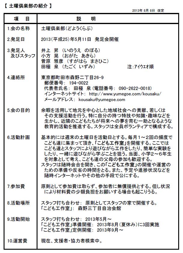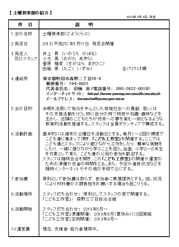 【設立時の「土曜倶楽部の紹介」】