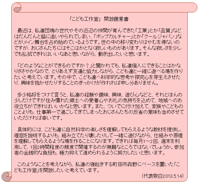【『こども工作室』の開設趣意書】